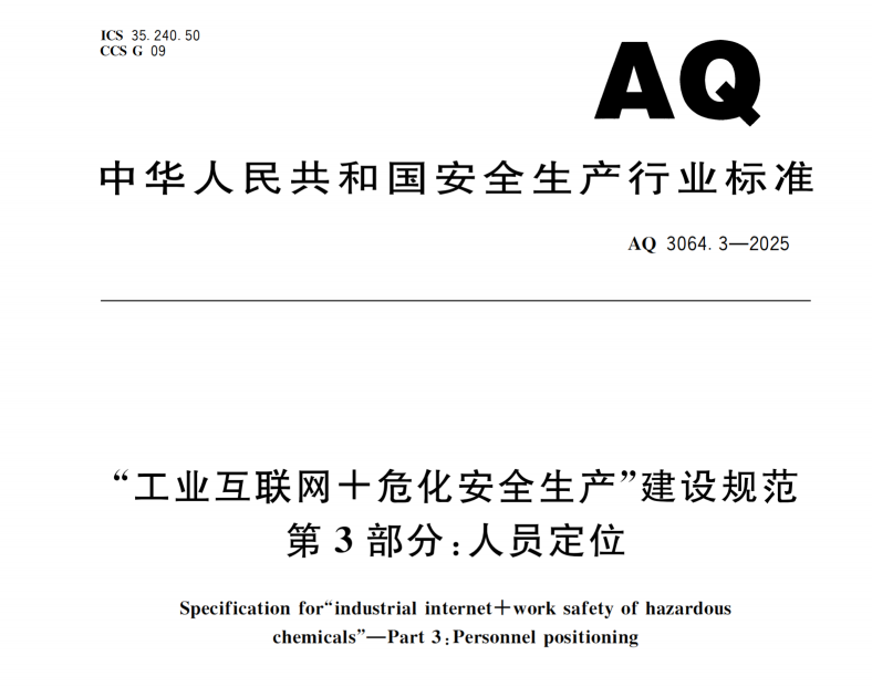 應急管理部于2026年1月4日正式發布《"工業互聯網+危化安全生產"建設規范 第3部分:人員定位》(AQ 3064.3-2025),該標準將于2026年7月1日起強制實施。針對涉危化高危企業,政策給予6個月系統升級過渡期,逾期未達標企業將面臨停產整改風險。