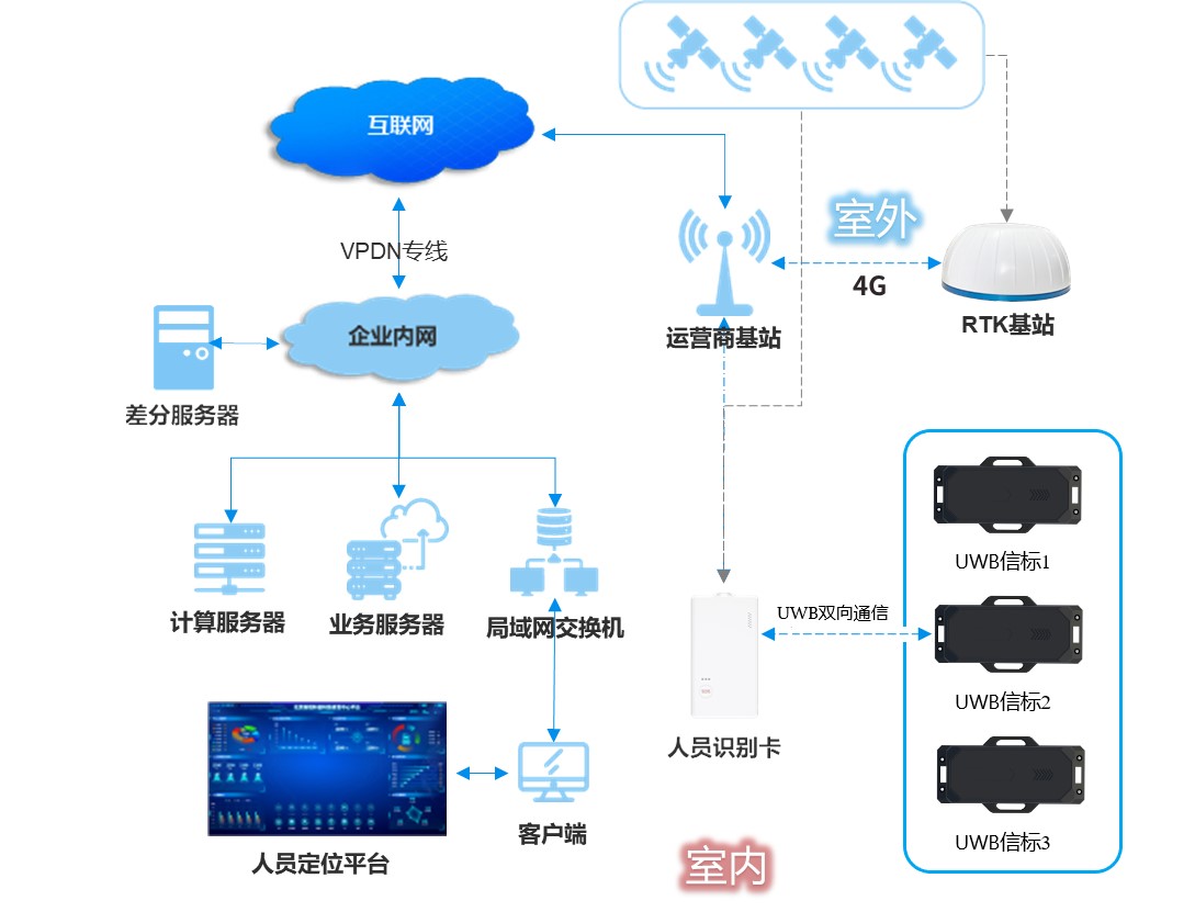 該信標(biāo)可用于UWB+RTK融合定位系統(tǒng),關(guān)于系統(tǒng)的詳細(xì)介紹可以參考文章:4G+UWB+GPS/北斗RTK人員定位系統(tǒng)解決方案